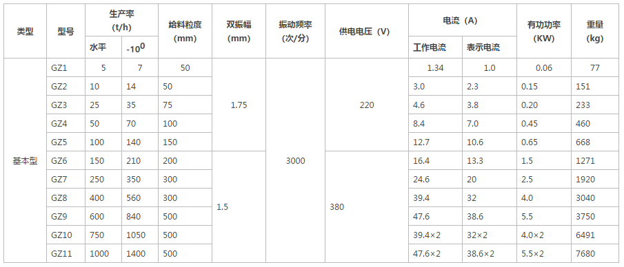 GZ電磁振動給料機的價格是型號來制定的,型號越大的GZ電磁振動給料機價格就會越貴,而型號是由生產(chǎn)率、給料粒度等數(shù)據(jù)決定,具體技術(shù)參數(shù)如下: